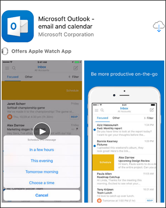 On your iOS device, go to App Store to download and install the Microsoft Outlook app.